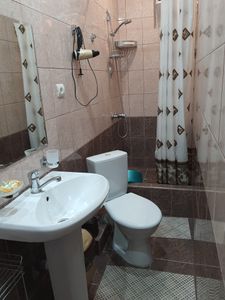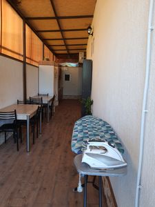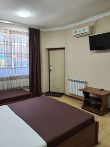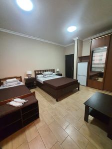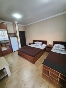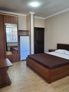 номер-студия, стандарт-номер (всего 6 номеров, соответственно, не шумно, спокойно), красивая, чистая набережная, кафе, рестораны, пляжные развлечения на любой вкус, Сочи Парк, мотодром, автодром — всё в шаговой доступности.